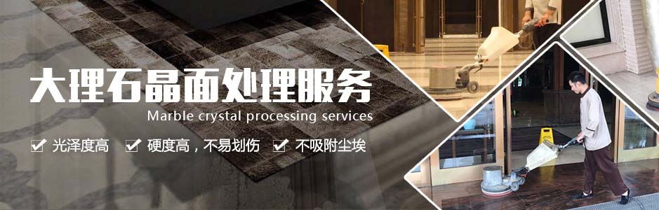 大理石晶面處理是針對水蠟工藝中硬度、光澤度、清澈度不夠及工藝繁瑣等不足改良開發而成的一種新型石材護理工藝,現已逐步取代打蠟工藝。利用晶面處理藥劑,在專用晶面處理機的重壓及其與石材磨擦產生的高溫雙重作用下。通過物化反應,在石材表面進行結晶排列,形成一層清澈、致密、堅硬的保護層,起到增加石材保養硬度和光澤度的作用。